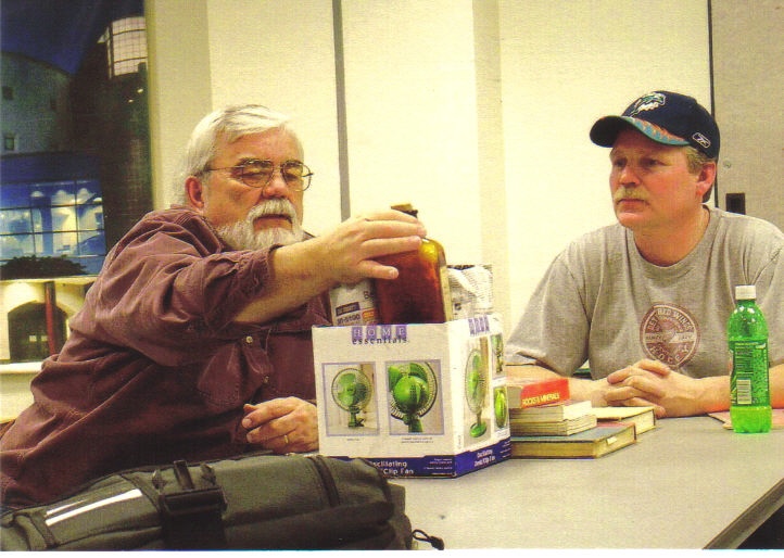 We had a great meeting last month, I hope you were there! The following people were present: Mary Hamilton, Scott Hendrichsen, Chuck Parker, Bill Drake, Tim Hayes, Wayne Marvin, Ed Nickerson, Dee Cole and me, Al Holden. Will someone remind me to take more pictures at the next meeting? Will someone remind me to bring my camera to the next meeting? Will someone recruit a new member who can take down a few notes for me at the meeting? By the time I set down to do the newsletter I have forgotten many things about the last meeting. I do remember that last month I received no word on a meeting theme. I grabbed a bottle from my collection that I really like. It is a 'Back Bar Bottle' that I got from Jack Short as a present. He was driving a nice Honda Accord for a long time, and it was turning into a high mileage car. It was still in beautiful condition and he wanted to keep driving it. The problem was it started to run terrible! He couldn't get it to idle correctly, and it would surge at highway speeds. Jack was told by the dealer that he needed a new carburetor and it would cost over $600.00 (actually more as I recall.) It may have been a lot more, I remember it was a stunning amount! Over the years I had rebuilt several carbs and with a over-the-counter kit and it was fairly easy. The product is called "Jiffy Kit" and it includes all of the gaskets and small parts that you will need to replace. Having built and raced several cars over the years rebuilding a carb was a walk in the park . . . or so I thought! I told Jack to leave the car with me and I would fix it. I ordered a Jiffy Kit for the car, and as soon as I could, I pulled the car into my shop. When I pulled off the air cleaner, I got my first look at the carb . . . it was overwhelming! It looked like I was staring into a large bowl of spaghetti! There were hoses running everywhere! At that point I should have called Jack and told him that I was 'in-way over-my-head!' But, that evil sin of pride pushed me further into the project. To be on the safe side I took a few pictures of the carb before I started removing hoses. It was such a tangled mess I had to take about 4 different pictures! Also, I purchased some small adhesive labels to number the parts so that they could be matched up again! I remember looking at the engine when I was holding the carb in my hands and thinking, "What have I done?" It was the same feeling I had after shooting my first deer! I am a bit of an animal lover, and there I was, looking at my own handiwork, a lifeless deer, and there was no way to undo that! Things got even worse after I got the carb apart! Not only was it 1000 times more complicated then any carbs that I remembered rebuilding, the kit they sold me was designed to work on a half dozen different models, so I was bound to have parts left over! Well, either the Lord was looking out for me, or Jack, or both! I got into the car, when everything was back in place, and turned the key . . . it started right-up and idled so smooth that you could barely tell it was running! I checked for vacuum or fluid leaks and everything was fine! I took it for a test run and it worked like a brand new car! When Jack picked up the car I showed him the receipt for the Jiffy Kit and that was about $45.00 . . . that was all I would take! The feeling of accomplishment was reward enough! What did I learn? Did I learn how to rebuild a very complicated low pollution carburetor? No, I learned to never do it again! I had learned why the auto shops that he talked to said that replacing the carb was the only option! Needless to say, Jack was so happy! He told me that he was using less gas and the car ran better then ever! The Logan Club Rye bottle was a Christmas present! That beautiful back-bar bottle was a gift from my old pal Jack! He told me that it was from an old Chicago bar. It is pressed glass and it has gold- leaf lettering that says "Logan Club Rye." It has a ground-glass stopper which is not a perfect match, it looks great on the bottle! I also brought along a bottle that I had on display at home beside that back-bar bottle, but I grabbed it in haste. I didn't have the one that I thought I had. It looks like an old free-blown black glass onion-style bottle but it wasn't. I didn't realize what it was until Tim Hayes started commenting on it. I had purchased some bottles from a guy who had salvaged them while diving, along with his diving buddies. They had a couple hundred bottles that they had recovered from a couple of 1800's Dutch shipwrecks off the southern coast of Africa. He e-mailed me several pictures of beautiful bottles and he was hoping to sell them all together. I only bought a few, and all this took place back in 1999. I do have a free-blown onion style open pontiled bottle and some early embossed case-gins that I will try and bring to the next meeting. One of the Gin bottles is embossed "COSMOPOLIET, J.J. MELCHERS wz, SCHIEDAM" The embossing is around an image of a Dutchman in hat, jacket, walking stick, shoulder pouch and gin bottle in extended drinking position.